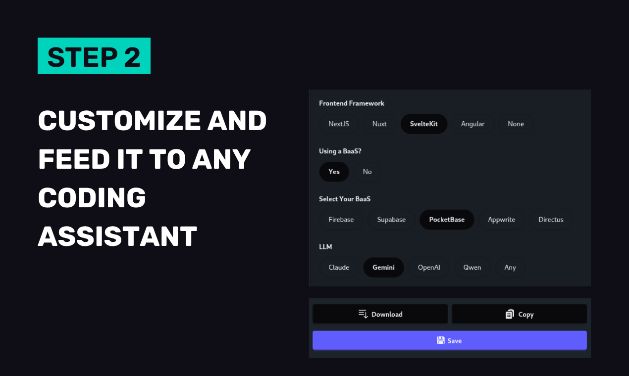Stop formatting. Start shipping. The AI Markdown Database instantly generates structured Markdown files so your coding assistant can build an app that fits your vibe. Templates, tech stacks, business logic included. The laziest way to build a web app.. ever.