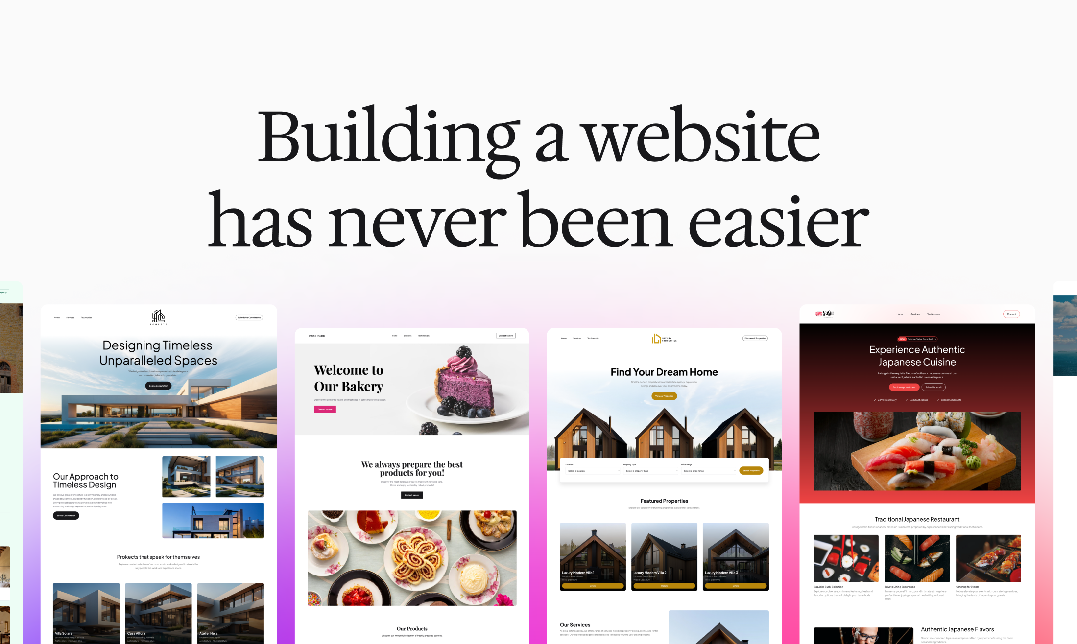 Create and launch websites more easily and quickly than ever before. Not a single line of code needed, just generate, customize & go live fast.