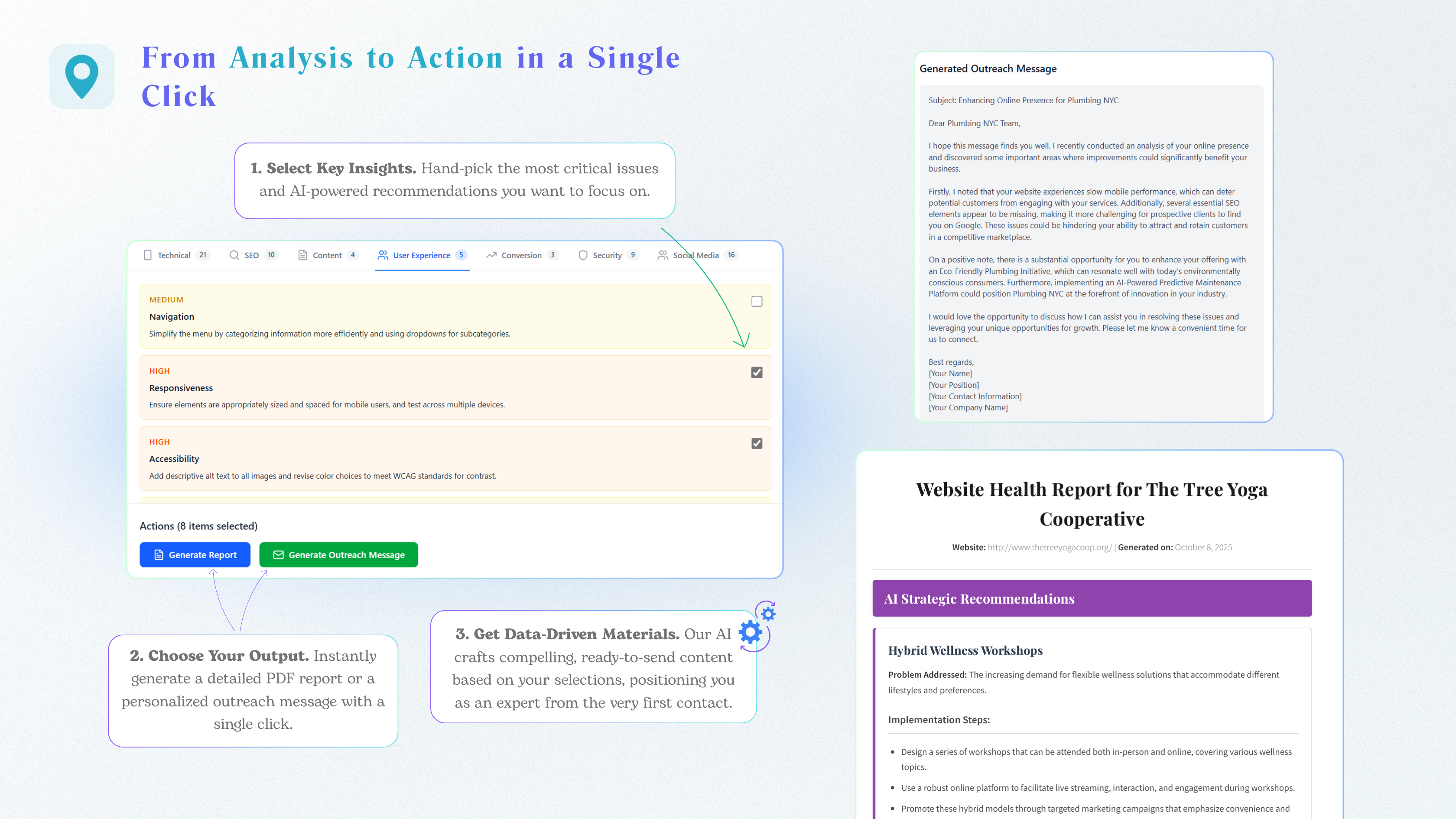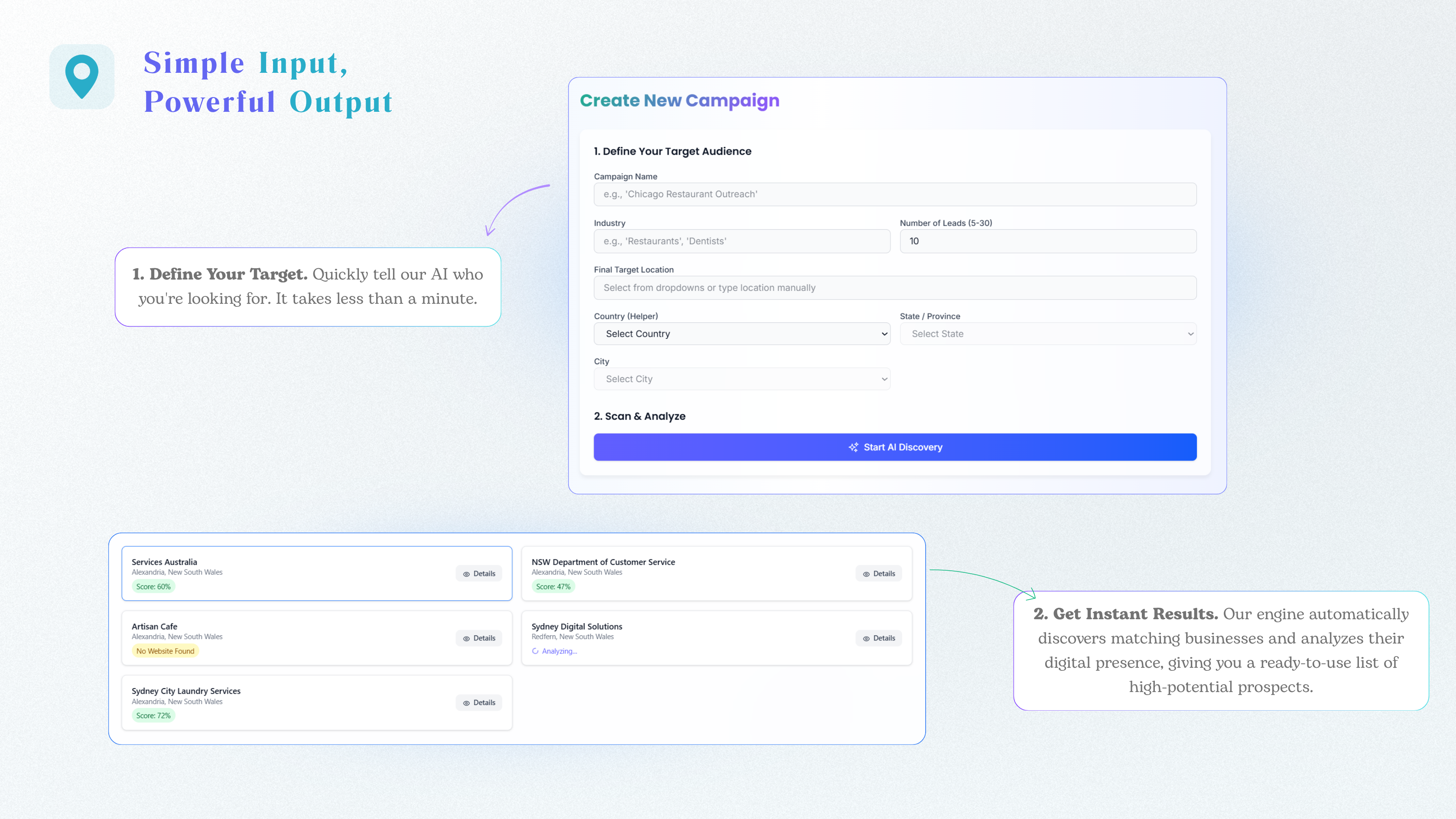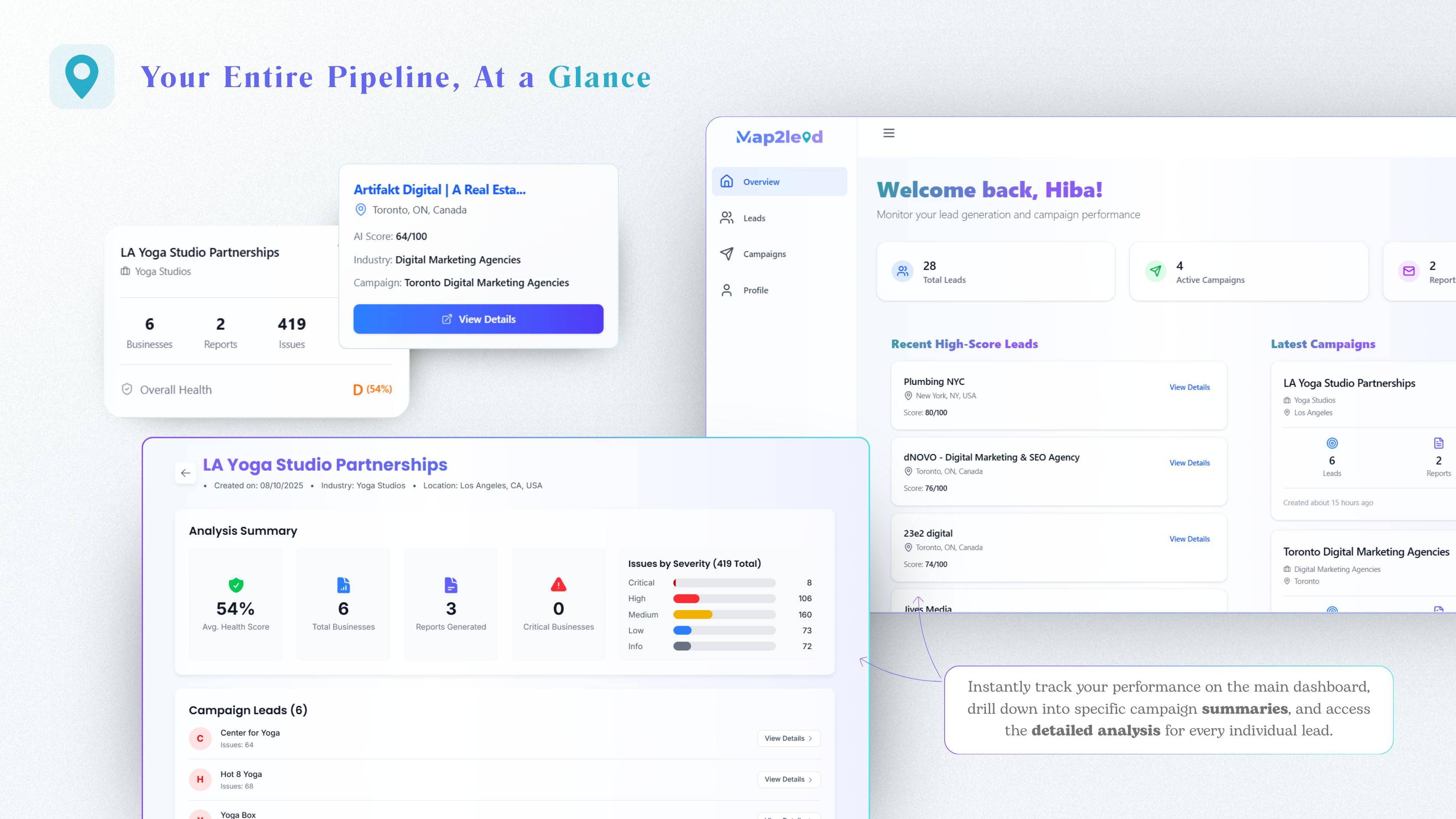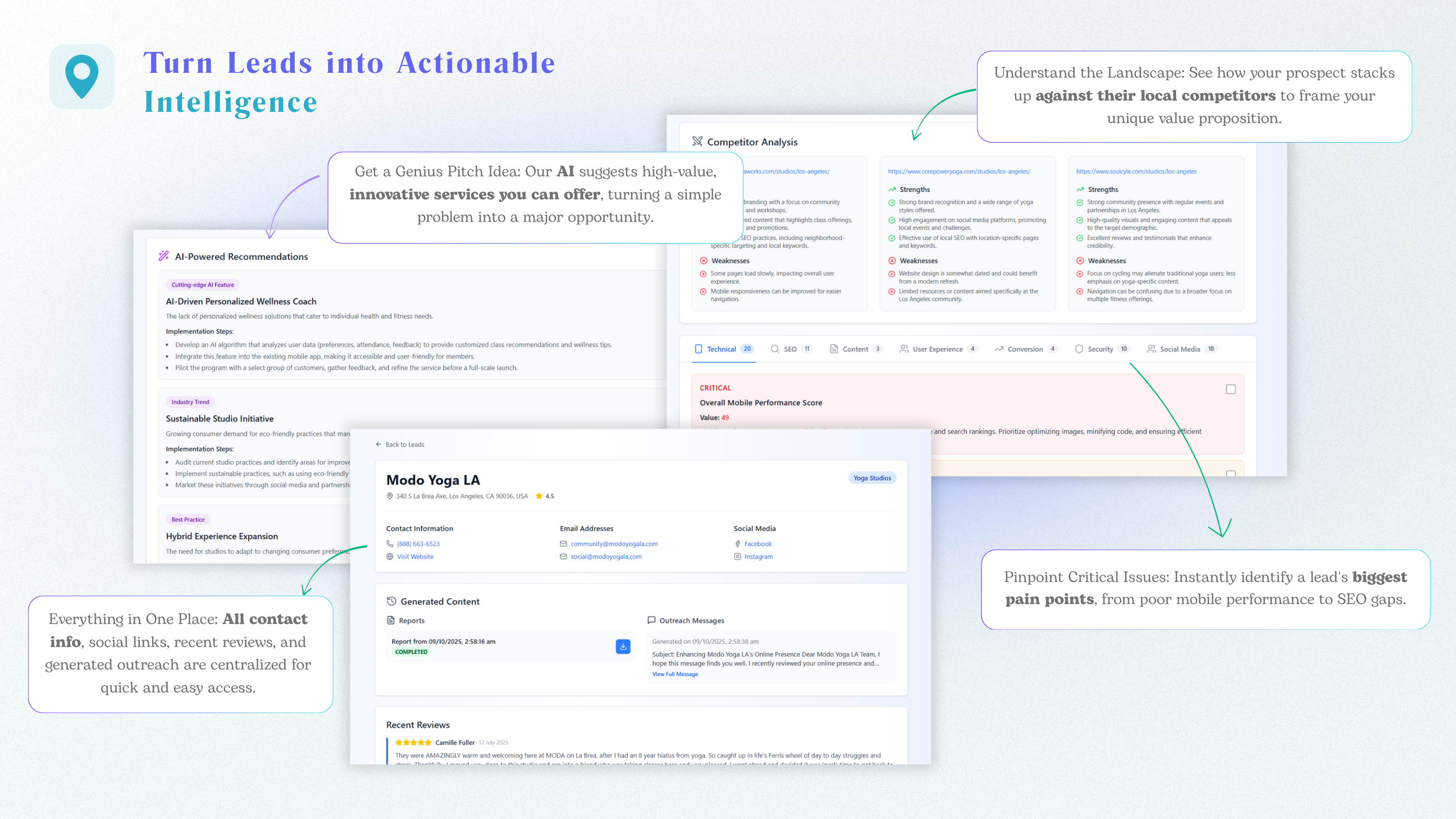 Stop cold calling. Map2Lead is an AI engine that finds local businesses, analyzes their digital footprint across 7 domains, and generates a personalized pitch for you. Go from search to outreach in minutes.