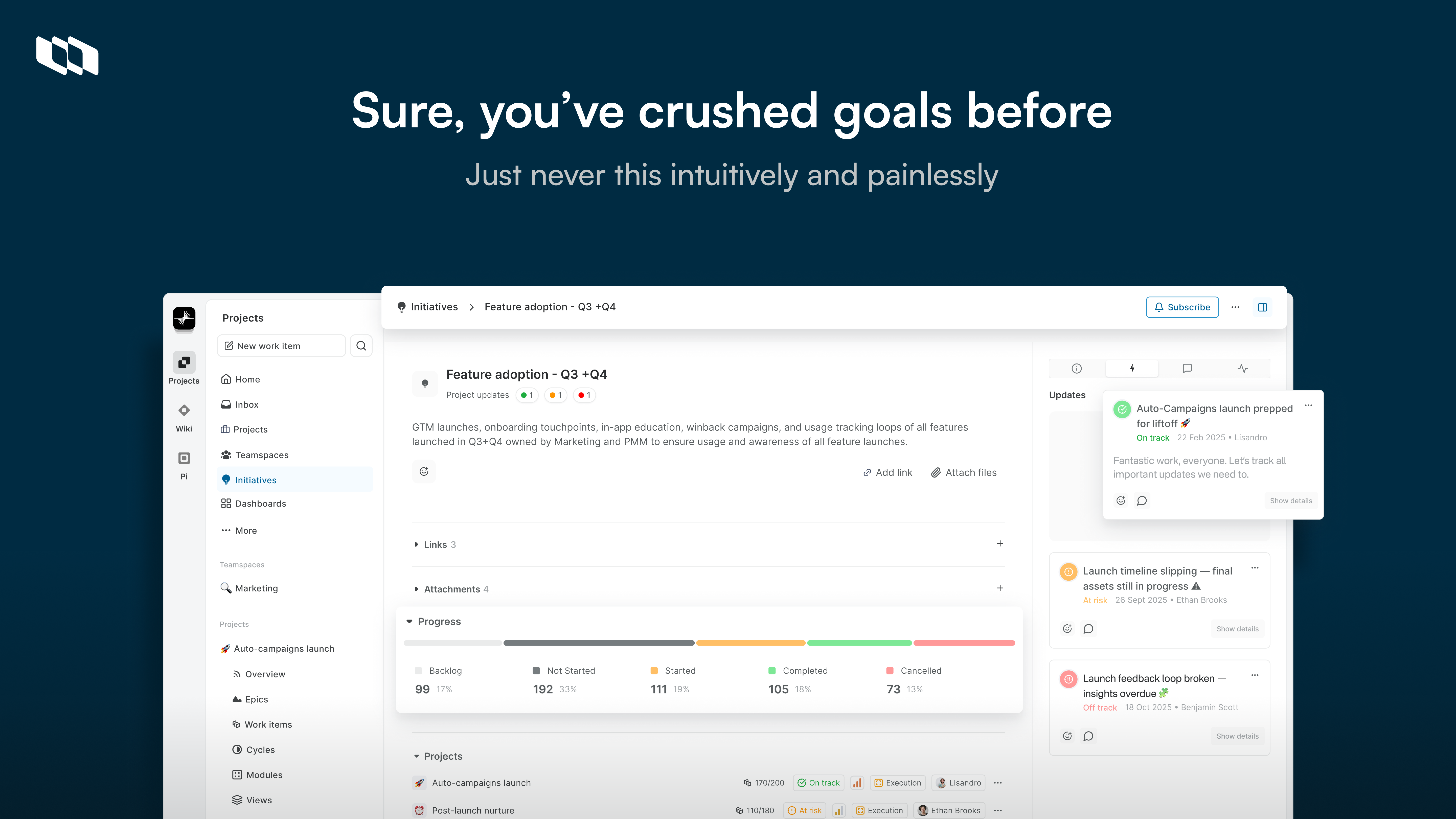 Plane brings your entire org into one workspace where every team is equipped to do their best work, their way. Whether you're tracking projects, writing docs, or using AI to figure work out, it's all right here.