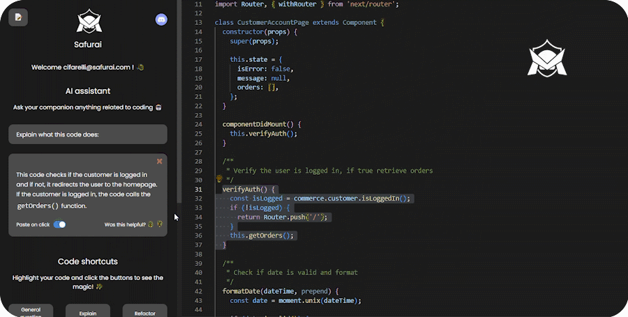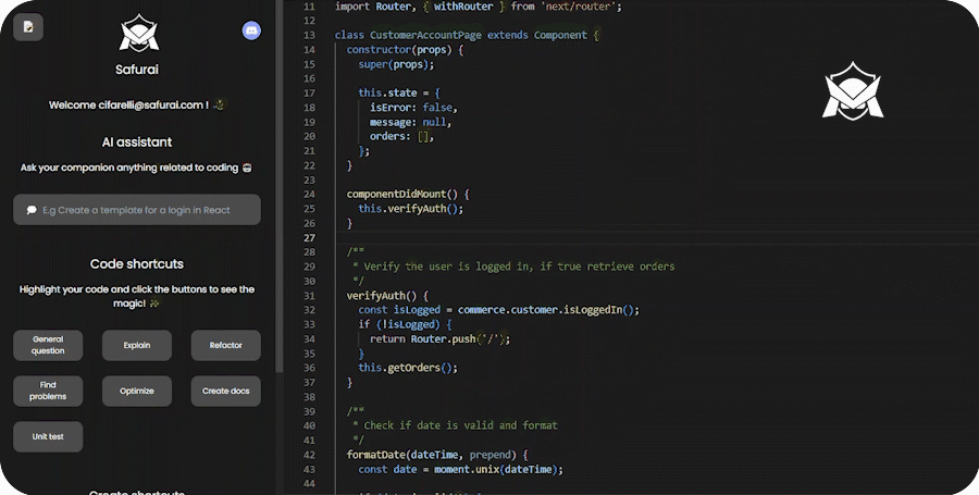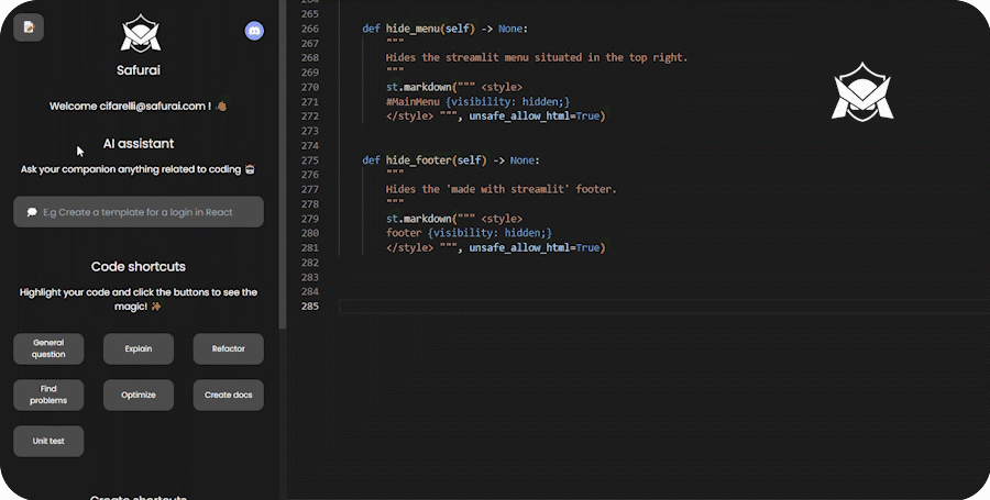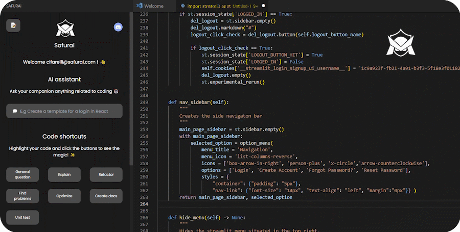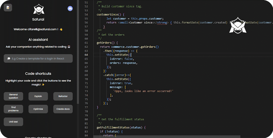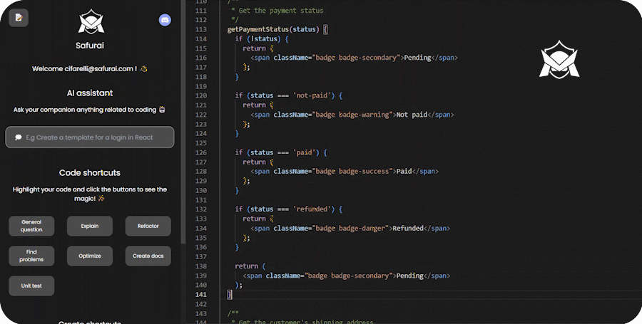 Safurai is a free AI-based IDE extension designed to assist developers by speeding up coding, debugging, refactoring, unit testing, documentation and many more tasks.