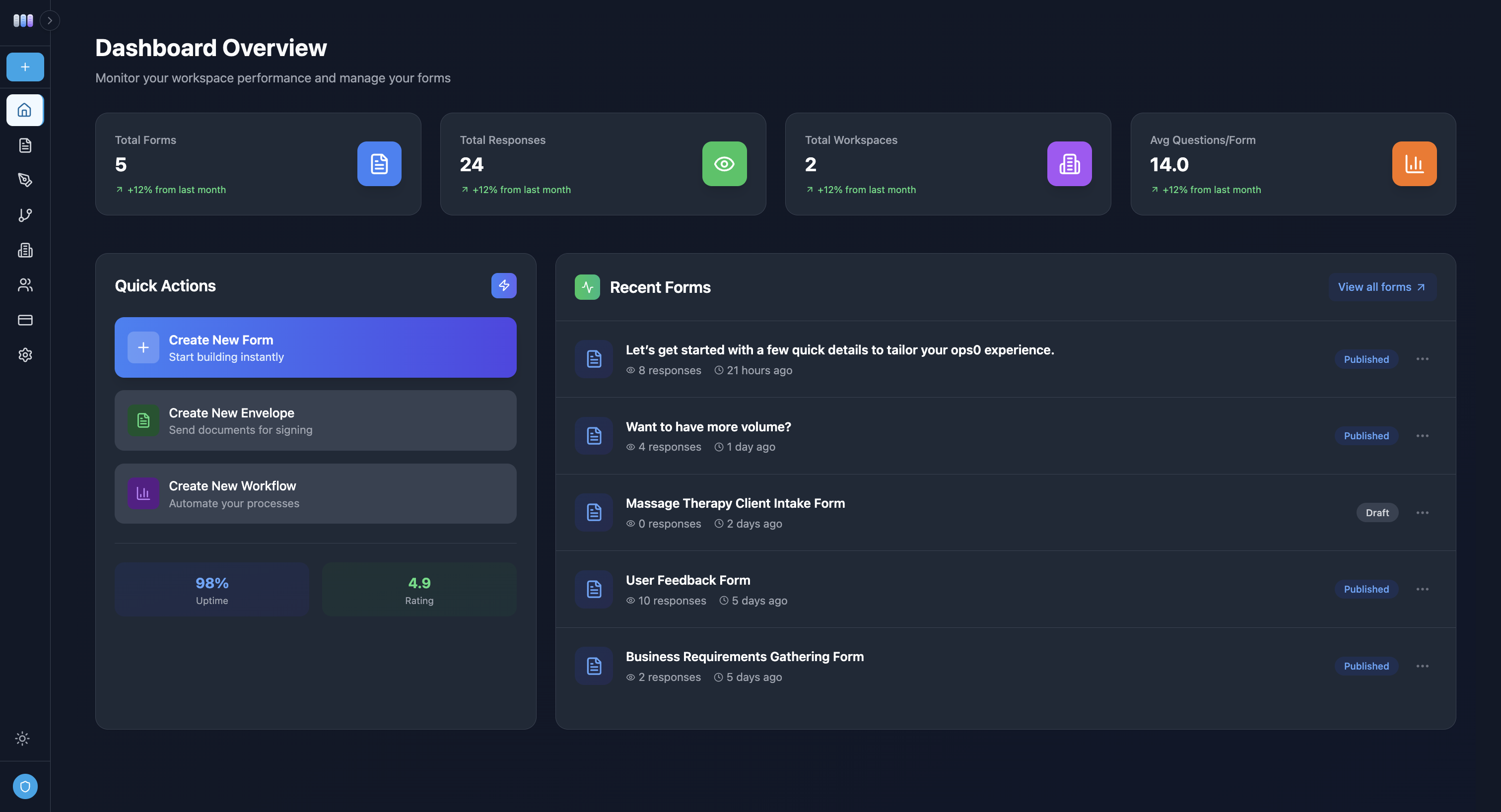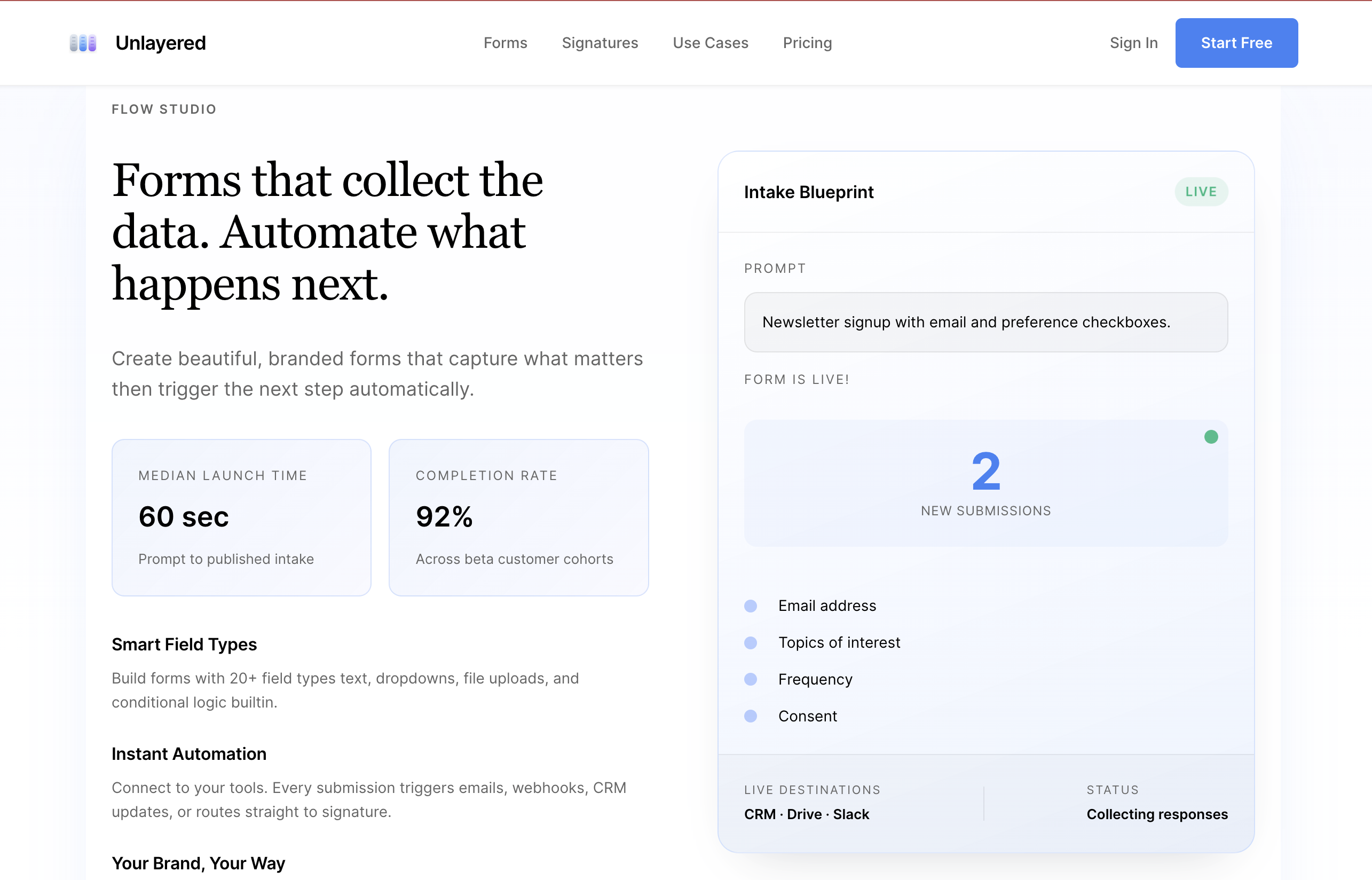 Create forms, collect e-signatures, and automate workflows in one platform. AI builds your forms in 60 seconds. Trigger emails, webhooks, CRM updates automatically. Lets you sign envelopes and take action on the data collected. Free forever!