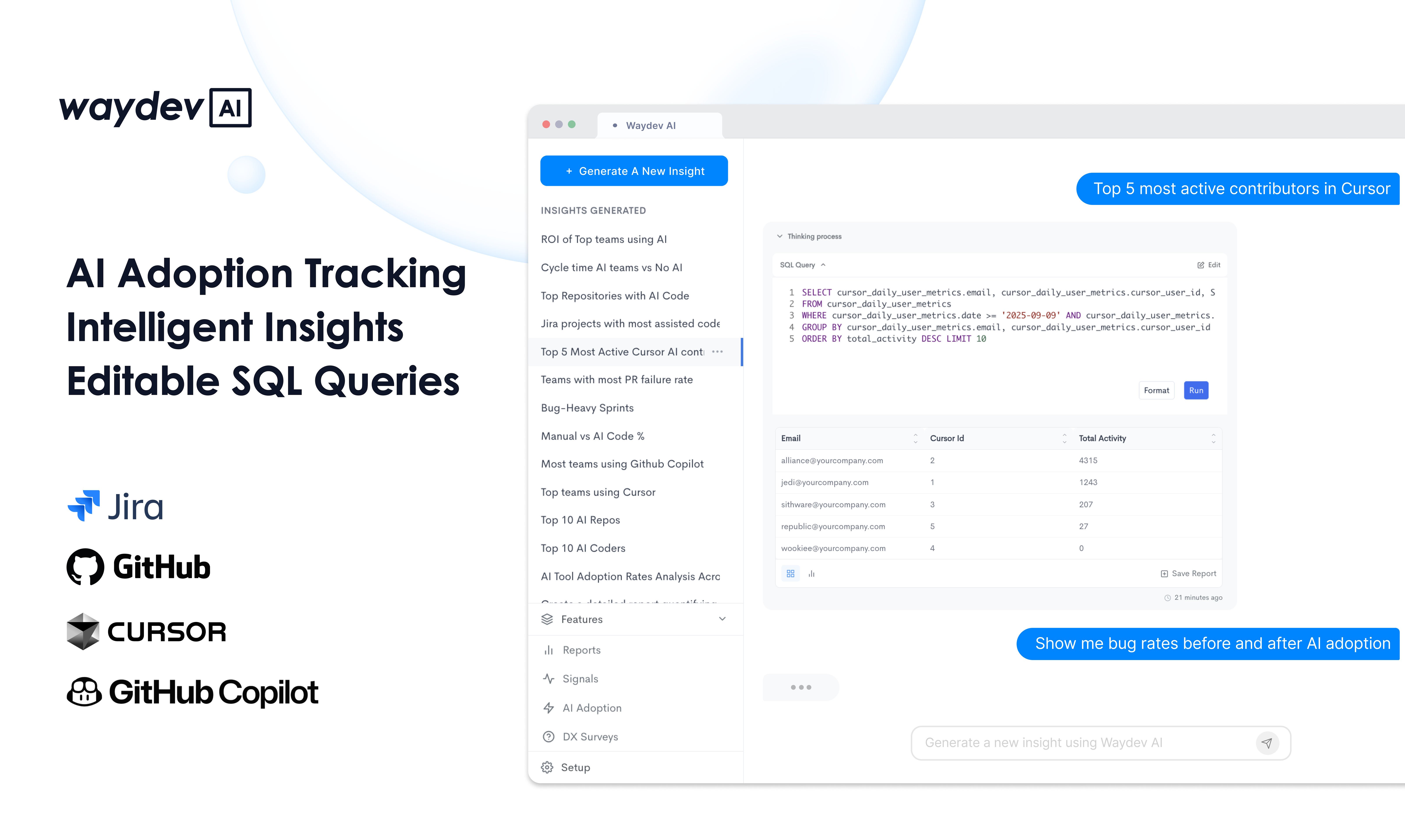 Waydev AI, an AI-native conversational platform designed to transform how engineering leaders measure performance and understand AI’s impact on delivery.